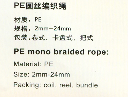 PE round wire braided rope